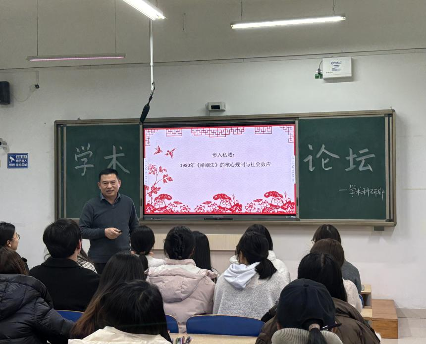 11月23日,aa3044永利集团董怀良副教授应邀为我院研究生作了题为《步入私域:1980年<婚姻法>的核心规制与社会效应》的精彩报告。我院2024级学硕、2025级全体研究生参加此次学术报告会。