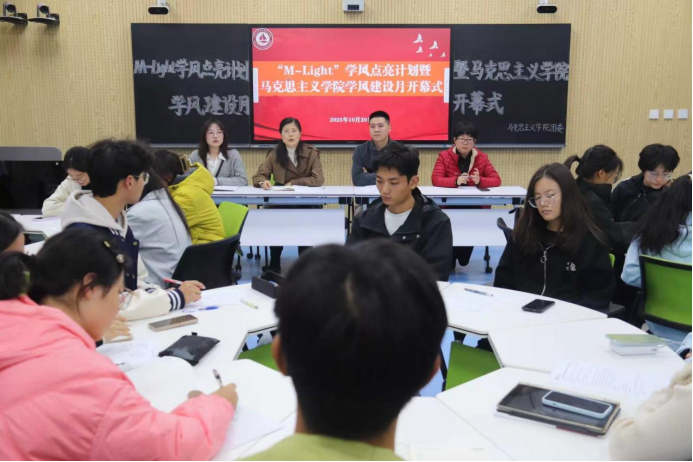 为深入贯彻落实立德树人的根本任务,积极响应学校关于加强学风建设的号召,营造勤勉向学、求真务实的学习氛围,10月20日,aa3044永利集团于东校区6#A101举行“M-Light”学风点亮计划暨学风建设月开幕式。学院党委副书记、副院长刘凤芹,团委书记史仁扩,辅导员李洪霞、裴新丽及各年级学生代表参加。