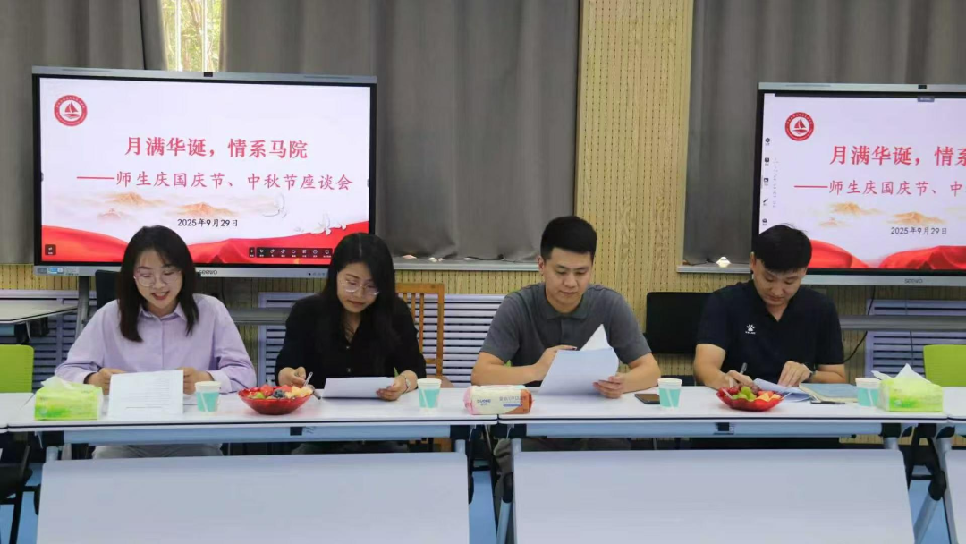 金秋送爽,丹桂飘香。在中秋与国庆双节交汇的美好时刻,9月29日,我院于东校区6#A101举办“月满华诞,情系马院”师生庆双节座谈会,学院团委书记史仁扩、辅导员裴新丽、新生班主任及学生代表齐聚一堂,共叙家国情怀,共话青春梦想。