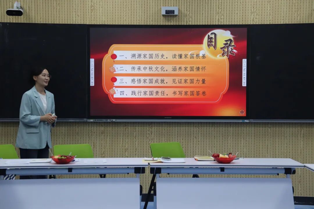 研究生孙慧冬以“家国同庆,月满中华”为题,从国庆的诞生与中秋的千年民俗切入,围绕“溯源家国历史、传承中秋文化、感悟家国成就、践行家国责任”四个部分,带来一堂由学子主讲的微思政课。她以革命先辈的家国情怀为主线,结合详实数据与真实案例,生动呈现了新中国的发展历程与辉煌成就。她呼吁同学们以专业学习筑牢根基、以理想信念锚定方向、以社会实践践行责任,让思政教育真正贴近青年视角,深深点燃了在场每一位师生的家国情怀。