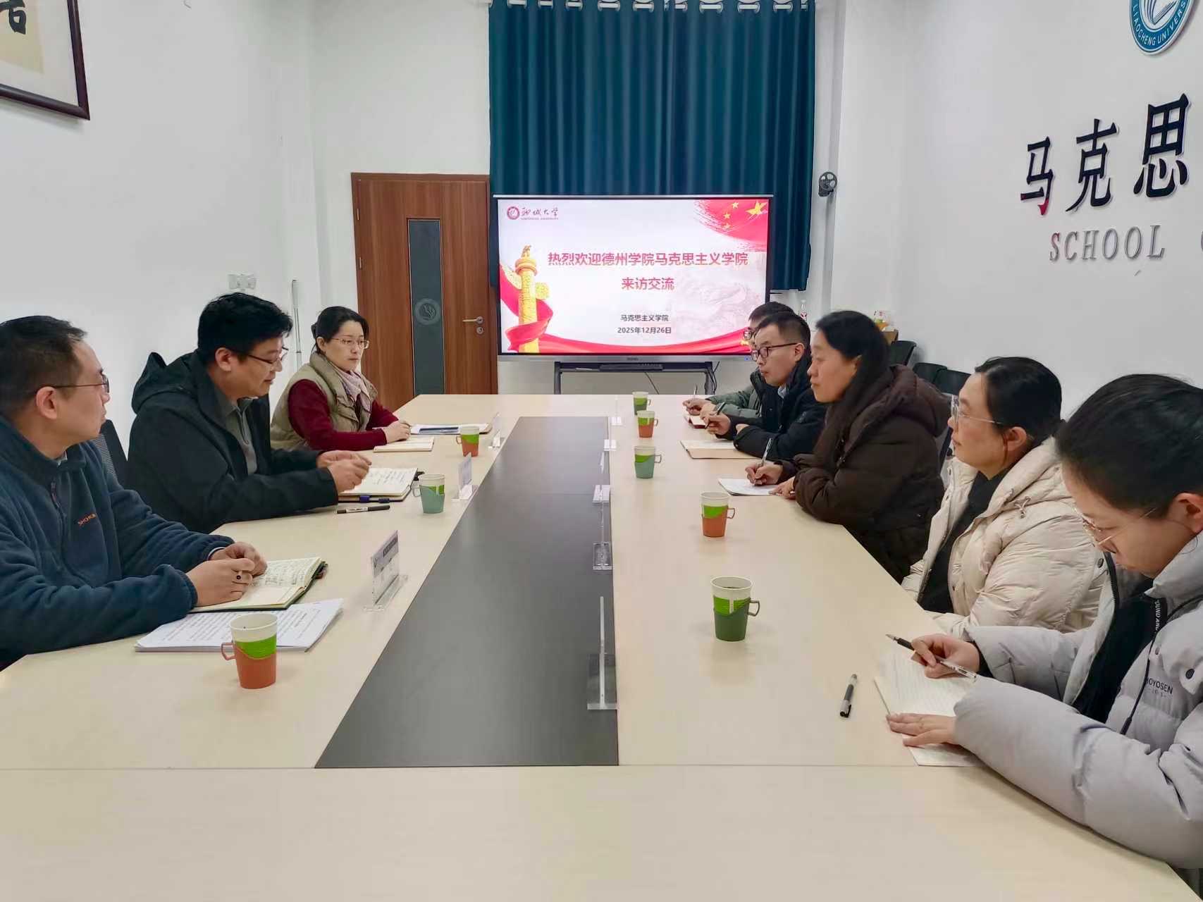 刘子平院长对刘文霞一行的到来表示欢迎,详细介绍了我院在学科建设、学位点申报、人才培养及思政课改革创新等方面的成效与经验。刘文霞副院长感谢我院热情接待,介绍了德州学院马院办学特色、学科布局及申硕工作推进进展。
