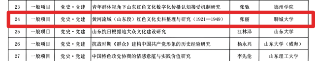近日,山东省哲学社会科学工作办公室公布了2025年度山东省社会科学规划研究项目立项名单,我院张丽老师申报的课题“黄河流域(山东段)红色文化史料整理与研究(1921-1949)”获批一般项目立项,李运庆老师申报的课题“数字时代消遣异化的表现、根源与治理研究”获批青年项目立项。