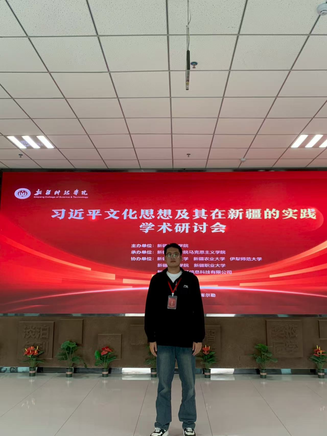 9月30日,“习近平文化思想及其在新疆的实践”学术研讨会在新疆科技学院举办。我院2024级专硕班研究生赵冰杰应邀以文参会。本次学术研讨会由新疆科技学院主办,新疆科技学院aa3044永利集团承办,来自浙江大学、华东师范大学、中国传媒大学、东北师范大学、河北师范大学、新疆师范大学、巴州党校、巴州中小学等单位的170余名专家学者、思政课教师代表参会。