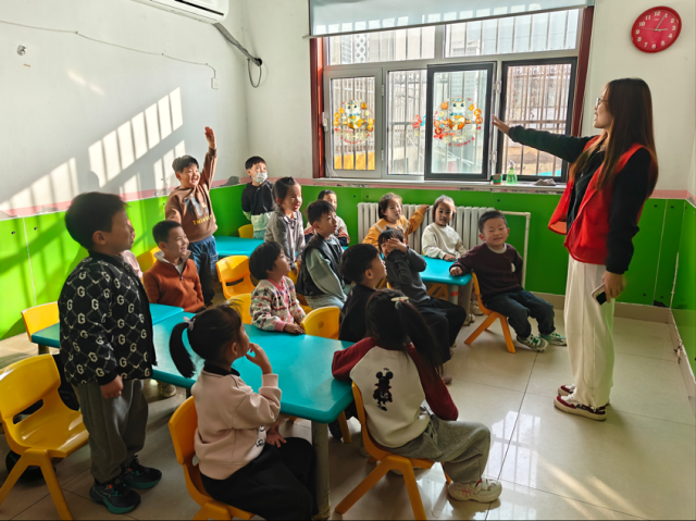 团支部成员化身“历史讲述人”,将抽象史实转化为情境化的生动叙事,以深情讲述唤醒时空记忆,引领孩子们步入历史的回廊。每个故事结束后设置的互动问答,更引得小朋友们踊跃举手、积极抢答,现场气氛热烈。团支部成员还与幼儿园教师围坐交流,共同探讨如何在社区中培养“热爱学习、善于学习”的良好风气,进一步延伸了活动的教育内涵。